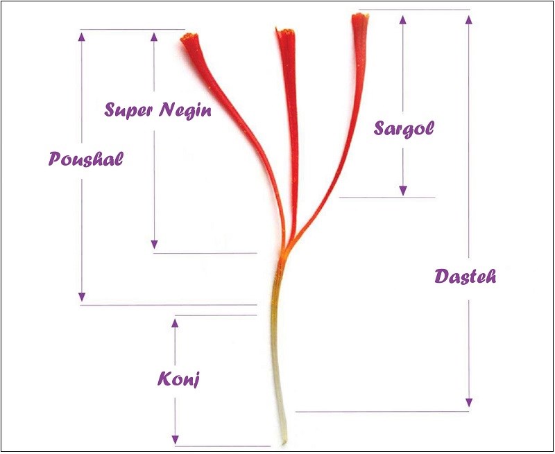 Saffron Konj (Konge): Hầu hết các dưỡng chất còn rất ít trong sợi này, vì nó là phần cắt lại của hai sợi cao cấp là negin và sargol, thường để sử dụng làm trà thay thế các loại thông thường.